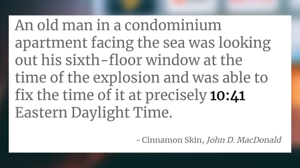Zu jeder Minute des Tages ein passendes Zitat präsentiert bekommen? Genau das leistet »Literature Clock«. Und das funktioniert genau so, wie ihr es euch vorstellt: Minütlich wird euch ein neues Zitat aus einem Roman präsentiert, in dem die aktuelle Uhrzeit enthalten ist. Zum Zeitpunkt, als wir diesen Artikel geschrieben haben, war das Zitat dieses: