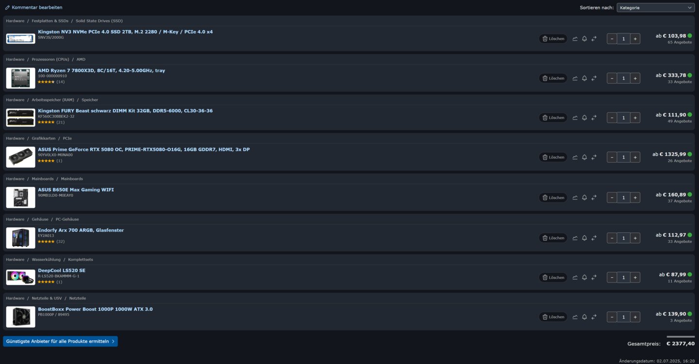- Grafikkarte: ASUS Prime GeForce RTX 5080 16 GB GDDR7 VRAM