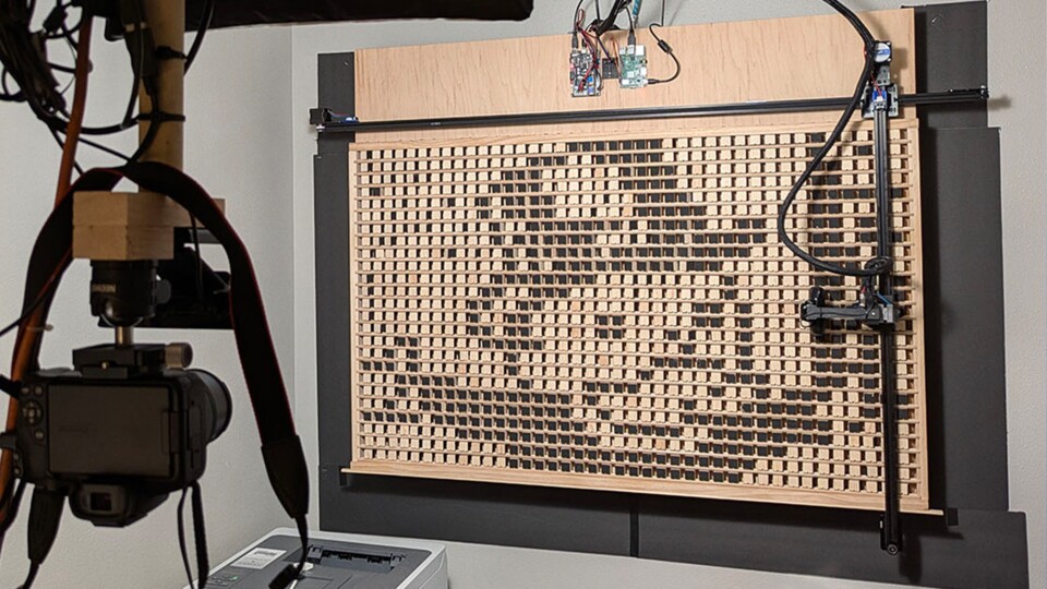 144-Hertz-OLED-Displays sind zwar ganz nett, aber wie wäre es mit einem 0,16-Hertz Holz-Display? Während moderne Displays Millionen von Pixeln mindestens 60 Mal pro Sekunde aktualisieren, dreht der Ingenieur Ben Holmen Kilopixel