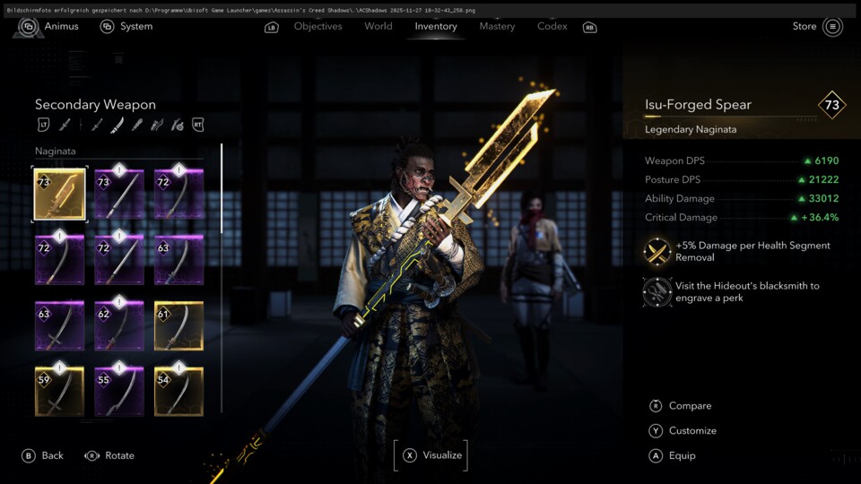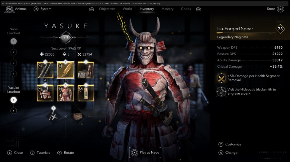 Außerdem finden sich in der Höhle zwei Isu-Waffen für Naoe und Yasuke, die in den Augen vieler Fans nun die Lore von Assassin's Creed ruinieren. Denn eigentlich hatte Kassandra ja geschworen, die Waffen zu vernichten. Dass diese nun viele Hundert Jahre später in Japan auftauchen, würde dem widersprechen. Allerdings könnte ein zukünftiges Title Update hier Klarheit schaffen.
