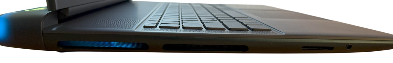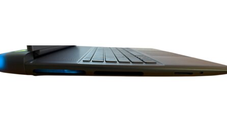 Abgesehen vom Card-Reader und dem 3,5-mm-Audioanschluss befinden sich die restlichen Ports alle an der Rückseite. Ich persönlich finde die Anordnung sehr praktisch, so stören die Kabel zumindest beim Zocken nicht.