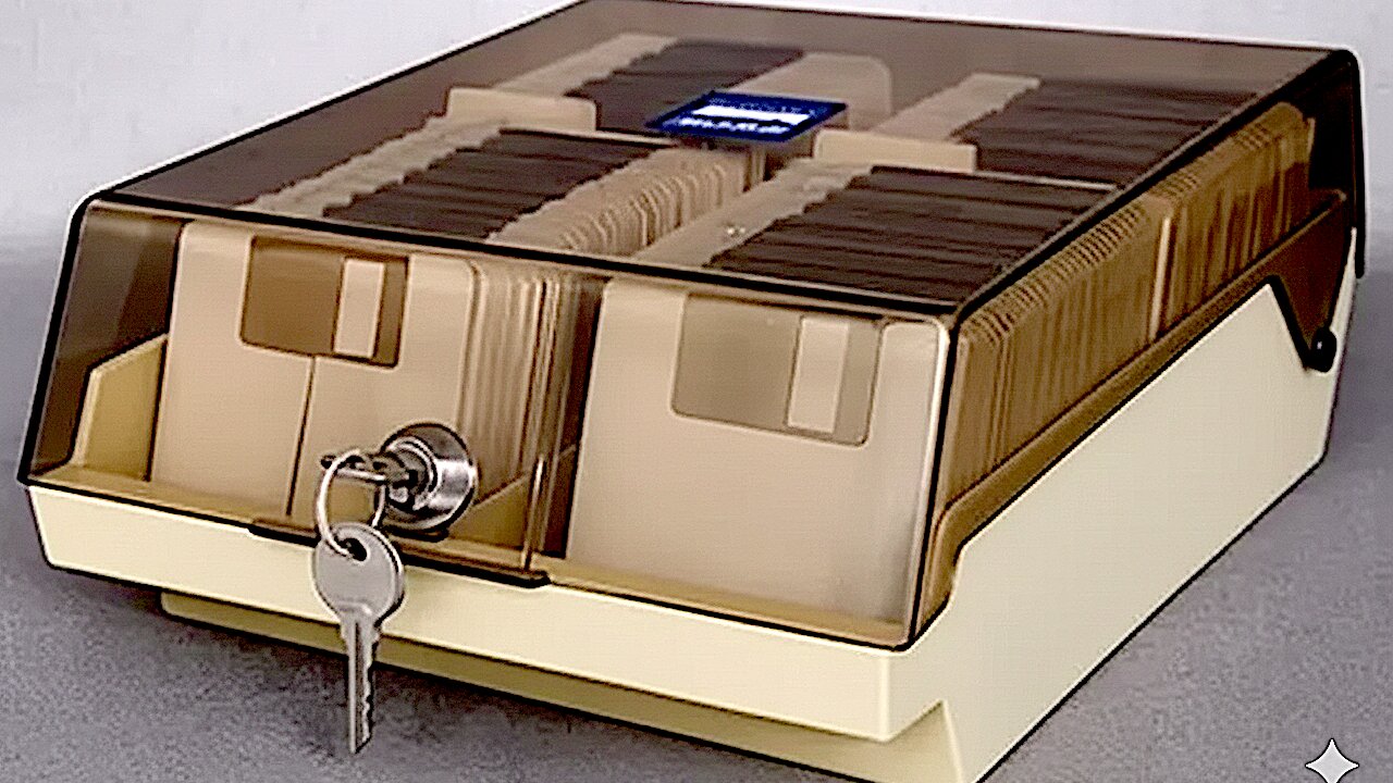 Lasst mich gerne in den Kommentaren wissen, welche Erinnerungen an die Floppy Disk ihr habt und ob ihr eine Aufbewahrungsbox mit Schloss auch schon mal live und in Farbe gesehen habt.