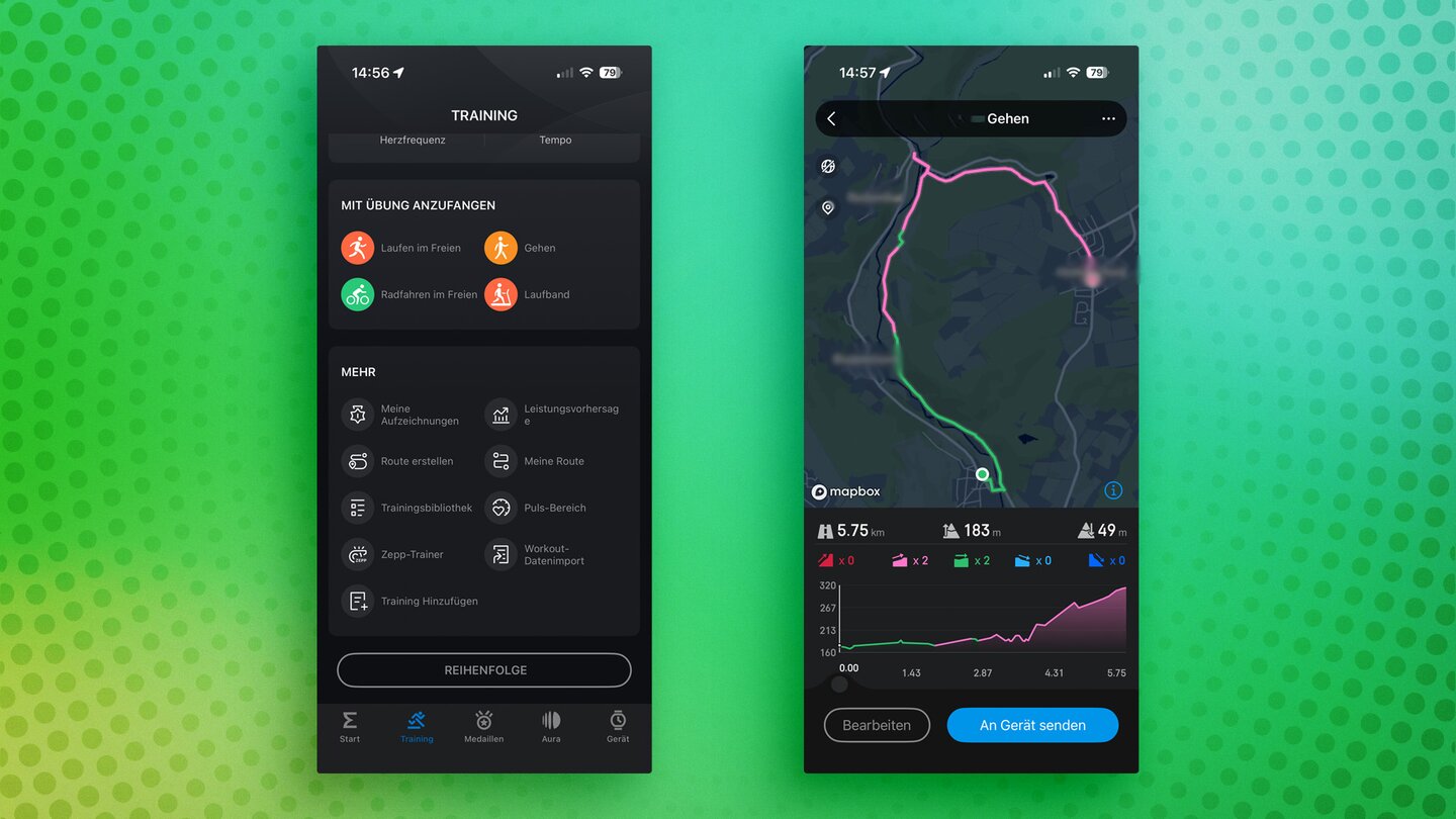 Diese Strecke kann dann wiederum zum Laufen oder Radfahren verwendet werden. All das wirkt inzwischen wie aus einem Guss und wird stetig besser.
