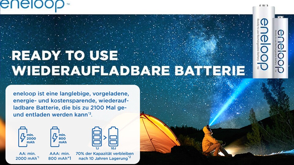 Der Umweltaspekt ist natürlich auch nicht zu vernachlässigen. eneloop beginnt dabei schon mit der Erstaufladung über Solarenergie und geht weiter über die Verpackung. Aber auch generell sind Akkus die umweltfreundliche Alternative zu Batterien.
