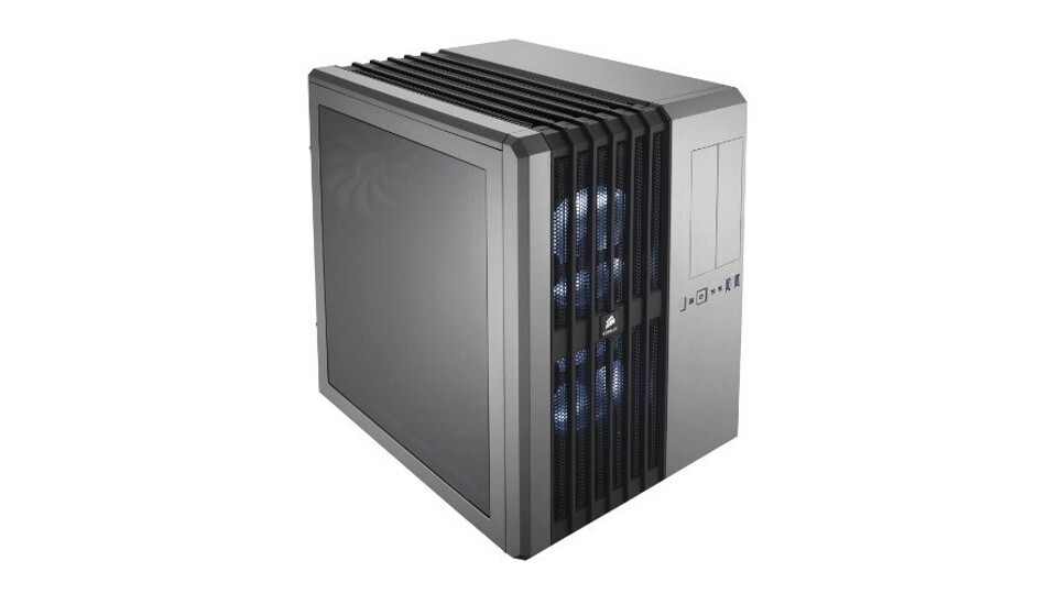 Das Würfelgehäuse aus der Carbide-Serie von Corsair bietet ein Zwei-Kammer-Design für eine verbesserte Kühlung der Komponenten, ein großes Seitenfenster und einen schwarzen Innenraum mit Kabelmanagement. Ein entsprechendes Mainboard vorausgesetzt, kann das Gehäuse acht Erweiterungskarten aufnehmen. Selbst vier Grafikkarten sind für dieses Gehäuse also kein Problem, sofern sie nicht länger als 32 Zentimeter sind.