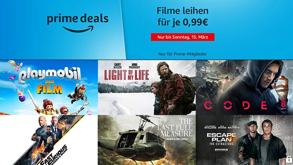 Gute Nachrichten für alle, die sich in freiwillige oder unfreiwillige Quarantäne begeben (müssen): Bis zum 15. März können Prime-Nutzer bei Amazon zahlreiche Filme für je nur 99 Cent leihen. Mit dabei sind sowohl Filme wie Fast&Furious: Hobbs&Shaw oder Angel has Fallen aber auch Kinderfilme wie Benjamin Blümchen oder Playmobil. Eventuell lesen ja Eltern mit, deren Kinder jetzt die nächsten Wochen viel Langeweile durch Schul- und Kindergartenschließungen haben.