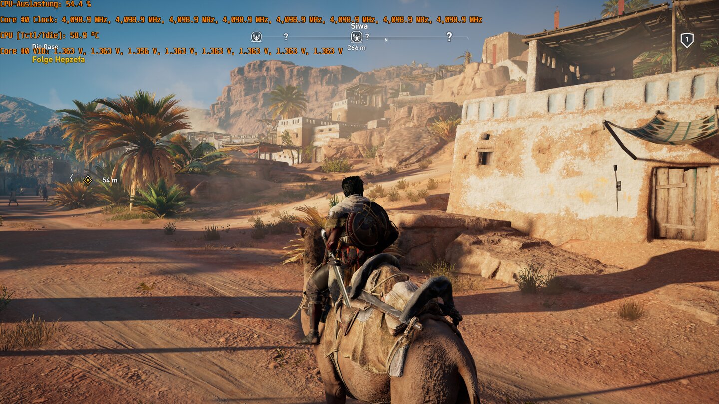 Die beim Spielen gemessene Temperatur steigt außerdem in unserem offenen Test-Aufbau mit einem Tower-Kühler von Noctua von 45 Grad auf knapp 60 Grad. Das ist zwar ein völlig unbedenklicher Wert, in einem geschlossenen Gehäuse sollten man beim Übertakten aber dennoch auf eine ausreichend gute Kühlung achten (was generell beim Übertakten gilt).