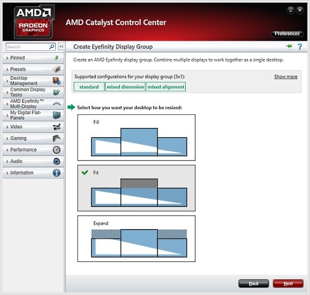 Fit - create the Eyefinity surface using best available rectangular area with attached displays.