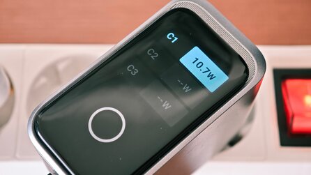 Eingebautes Display: Das Anker Prime Ladegerät verfügt über einen kleinen LC-Bildschirm, der mit einer einzigen Touch-Taste bedient wird. Mit einem Tastendruck wechselt ihr zwischen den verschiedenen Funktionen: