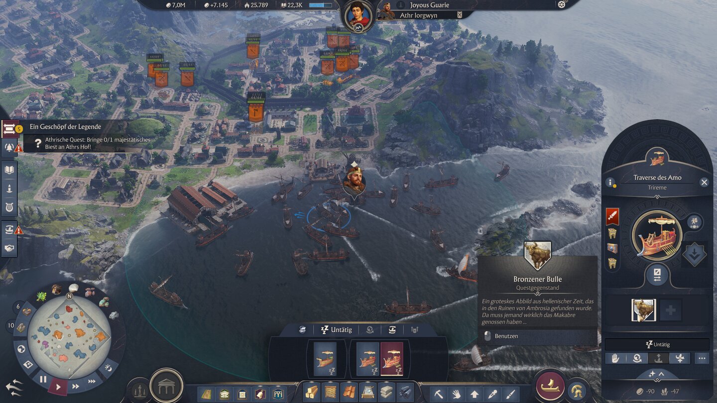 Wenn ihr in Latium die Ruinen des alten Ambrosia entfernt habt, stoßt ihr dabei immer wieder auf Hinterlassenschaften. Eine davon ist der Bronzene Bulle. Dieses Questitem liegt in eurem Kontor und ihr könnt es zu Athr bringen.