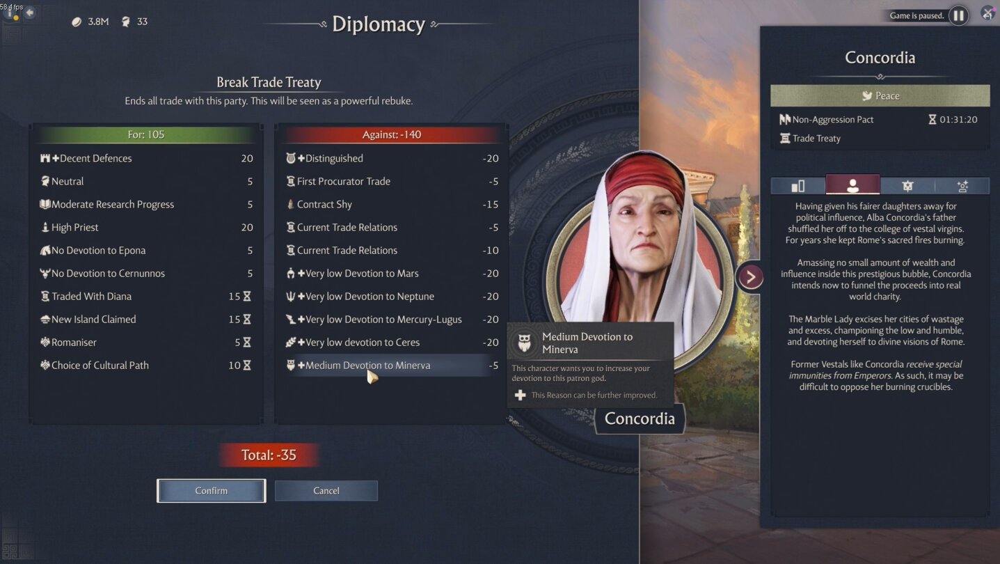 - Concordia: Die ältere Dame ist eine ehemalige Priesterin und entsprechend fromm unterwegs. Sie mag es, wenn ihr römische (!) Götter verehrt und euch nicht dem Luxus hingebt.