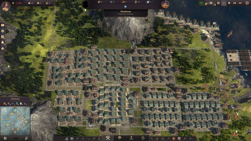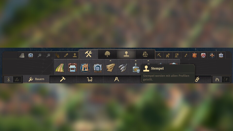 Die Stempelfunktion in Anno 1800 vereinfacht vieles, ihr aktiviert sie über den Stempel-Button unten links im Interface. Wenn ich ein Layout fertig gebaut habe, dann speichere ich es einfach als Stempel ab und kann es auch in anderen Partien immer wieder verwenden.