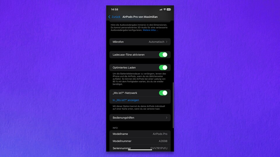 neben euren AirPods. Scrollt runter, bis ihr die Option findet.