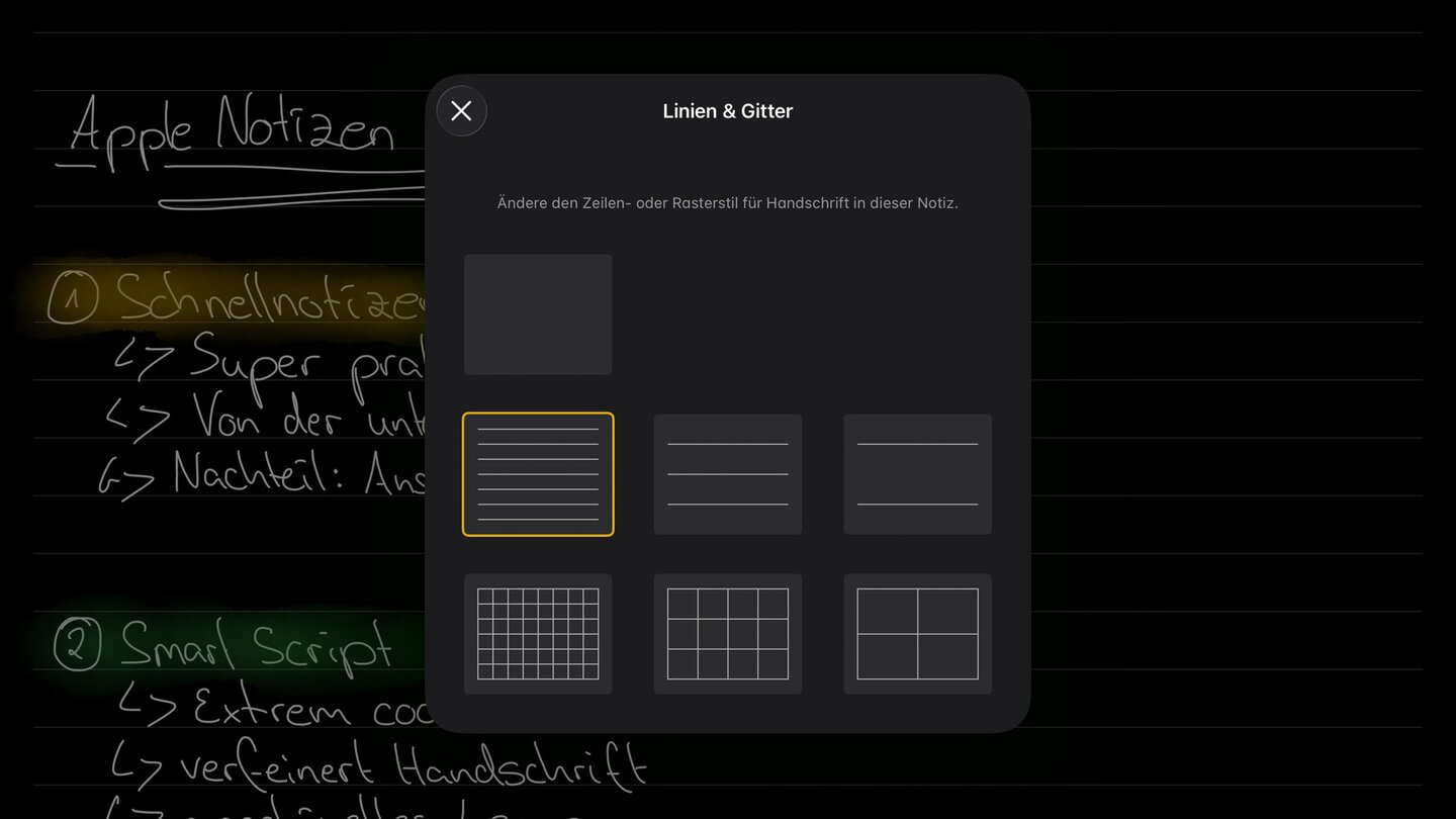 Aufbauend auf Tipp Numero 2 dürfen die Gitter und Raster nicht fehlen, die das Notizblock-Feeling der App auf die Spitze treiben. Die Linien sorgen für mehr Orientierung.