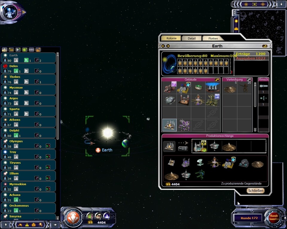 Allein die Bevölkerungszahl bestimmt, wie viele Bauwerke auf einem Planeten errichtet werden können; wer mit einer Frachterflotte Kolonisten auf Grenzwelten schaufelt, stampft dort im Nu Hightech-Zentren aus dem Boden, denn die Bauzeit für Einrichtungen und Schiffe ist überall im All immer gleich – auch auf kargen Steinbrocken, auf denen ein einsamer Siedler am Fels kratzt. Verteidigungsanlagen wiederum brauchen überhaupt keine Voraussetzungen, sodass entlang der Frontlinien Mini-Außenposten entstehen, über denen 20 orbitale Mega-Laser kreisen.