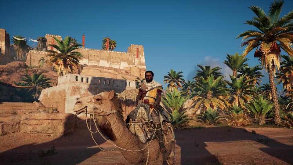 Unser GPU-Testsystem mit Intel Core i7 7700K und 16,0 GByte DDR4-2400 Arbeitsspeicher bestücken wir für die Grafikkarten-Benchmarks mit aktuellen und älteren Modellen von AMD und Nvidia. Als Benchmark-Sequenz dient uns ein Kamelritt durch die Oase zum Spielbeginn.
