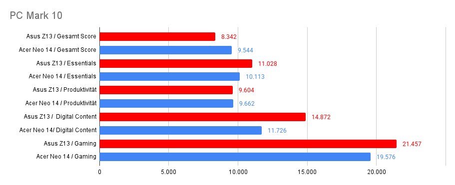 Auch im PC Mark 10 ist das Acer Neo 14 mit Intel Core 9 185H und RTX 4070m Grafik der Gegner.