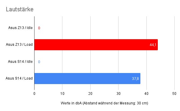 Hinsichtlich der Lautstärke ist zu sagen, dass das Z13 im Idle lautlos ist.