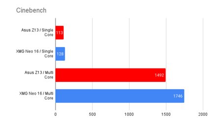 sowie im Battery-Eater-Test erreicht das Z13 praxistaugliche Werte von mehr als 10 beziehungsweise mehr als 12 Stunden.