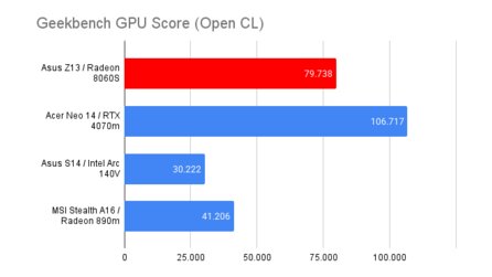 Im GPU-Teil des Geekbench tritt die IGP des AI-Max+-Pro gegen die RTX 4070m (125 Watt TGP) des Acer Neo 14 an.