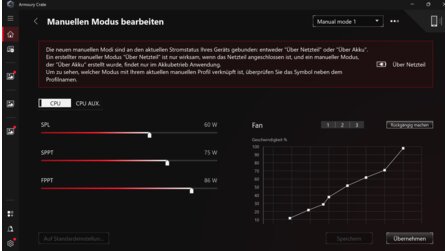 Dieses Plus an Leistung wird allerdings auch mit einer deutlich höheren Geräuschkulisse erkauft. Ich persönlich würde daher den Turbo-Modus verwenden und auf das manuelle Anheben der Power-Limits verzichten.