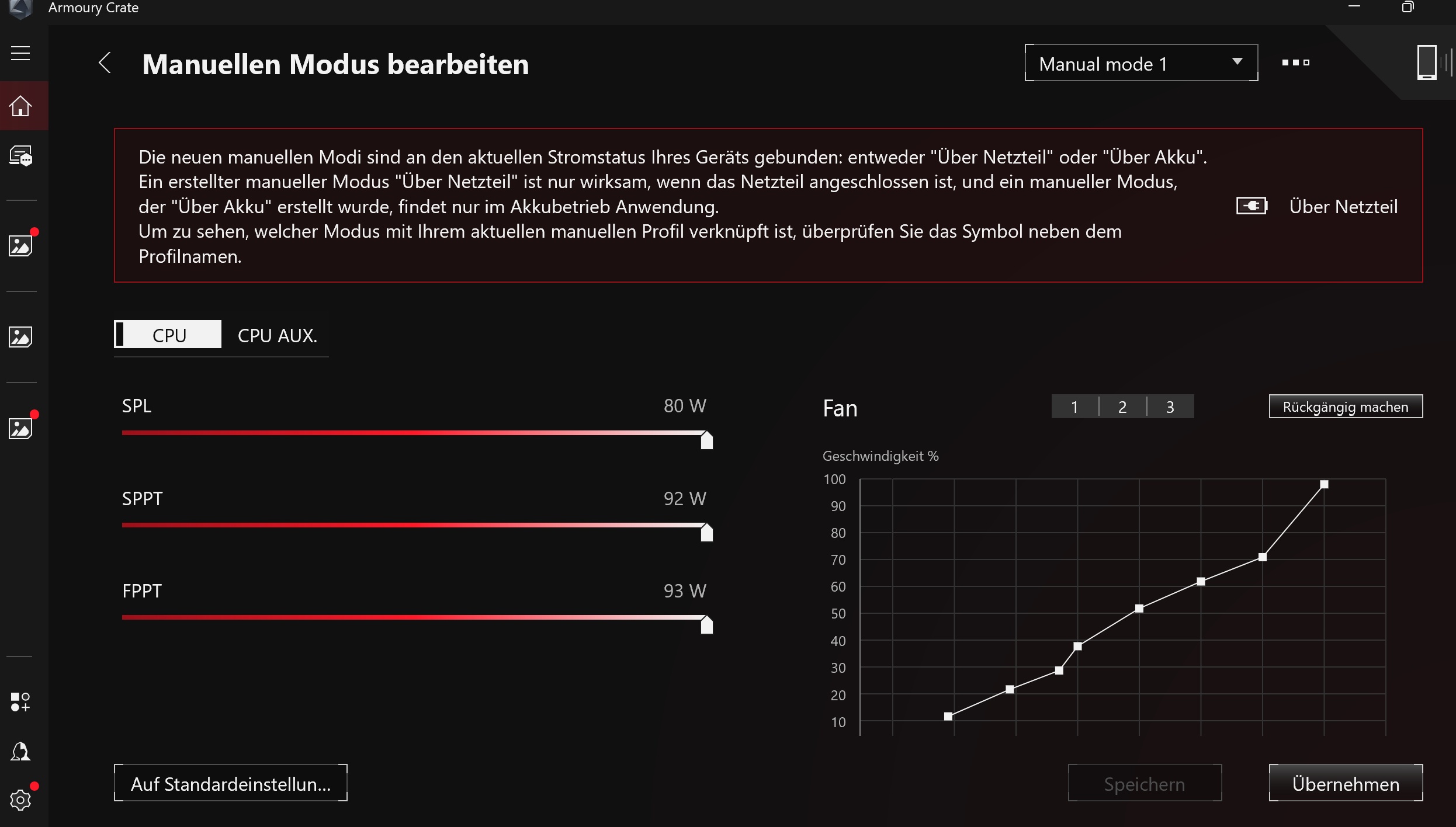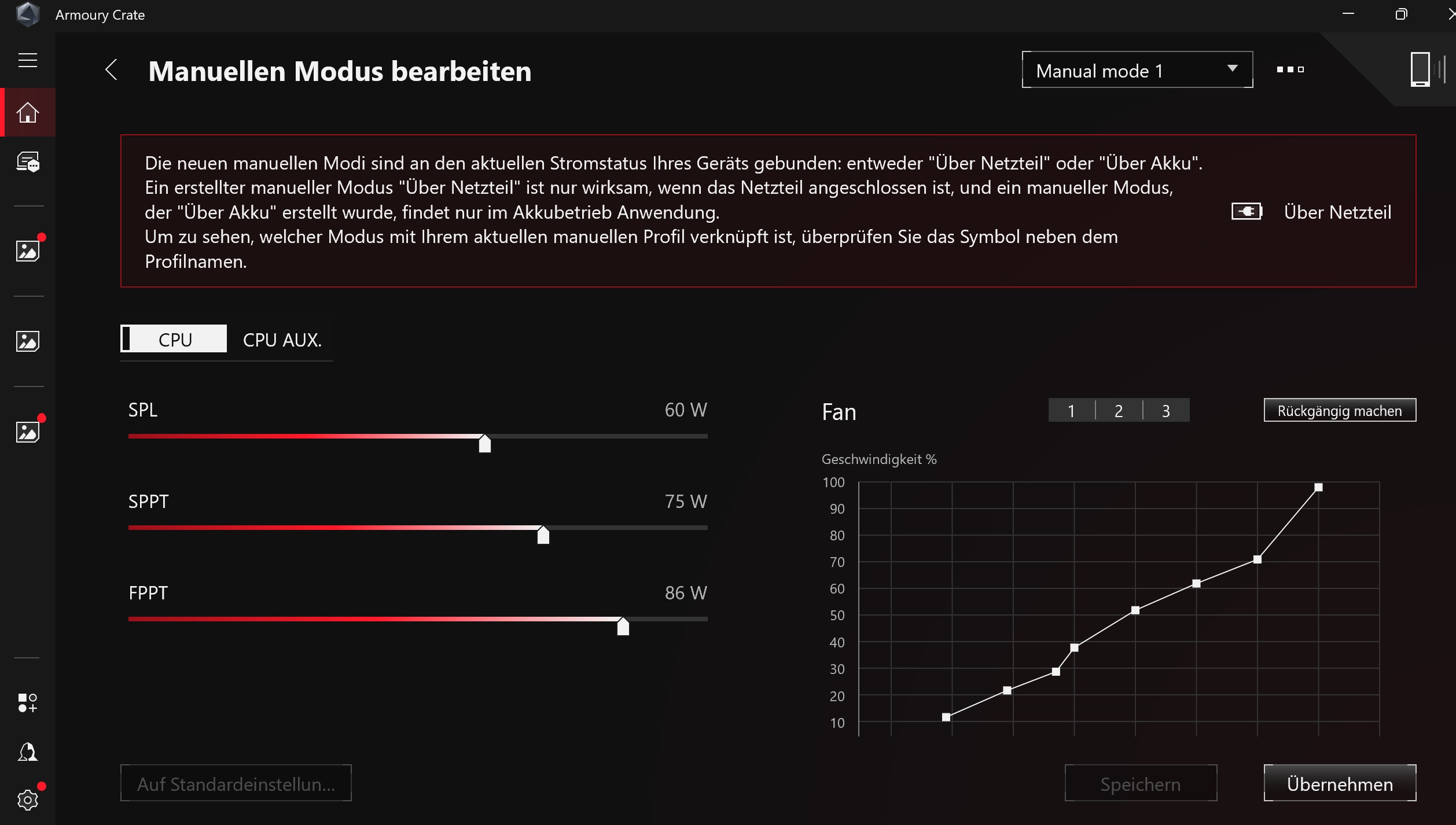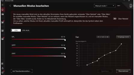 In Armoury Crate habe ich im manuellen Modus alle Regler auf Anschlag gestellt. Und das sind die Ergebnisse: