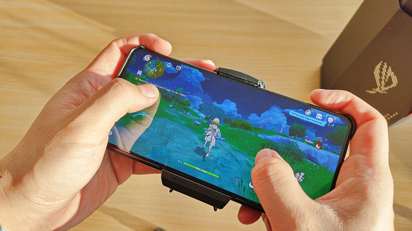 Auch beim Spielen beweist es Ausdauer. In Genshin Impact hielt das Handy 5 Stunden und 25 Minuten durch, bevor es ausging. Dabei war sowohl die Helligkeit als auch die Lautstärke auf etwa 50 Prozent eingestellt und der externe Lüfter angeschlossen. Dieser lief im intelligenten Modus, also automatisch.