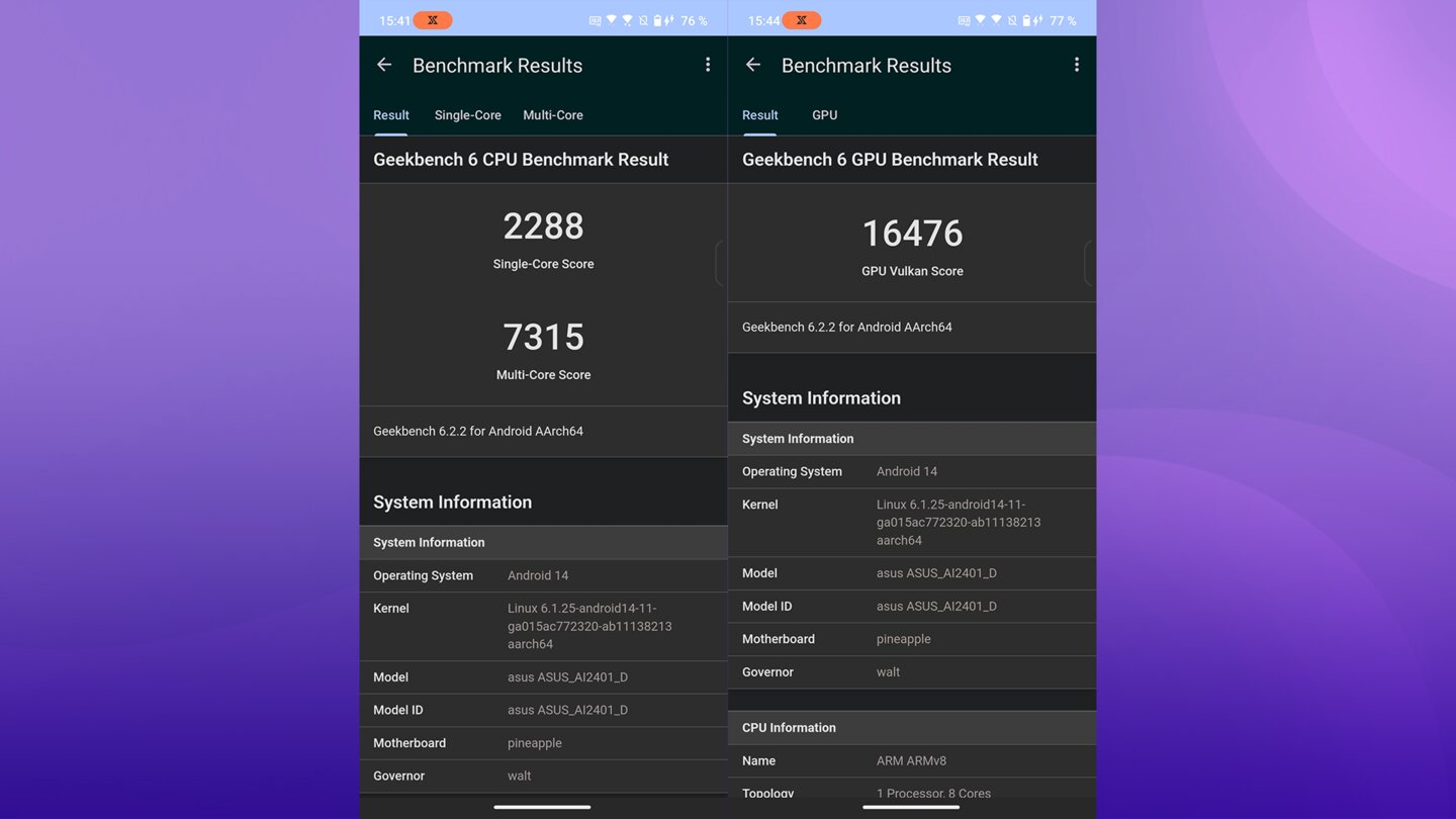 Übrigens sind das in beiden Fällen trotzdem extrem hohe Punktzahlen. Zum Beispiel hat das Xiaomi 14 Pro mit demselben Snapdragon 8 Gen3-Chip »nur« 4.629 Punkte erzielt. Der Vorgänger, das Asus ROG Phone 7 Ultimate, konnte 3.752 Punkte für sich beanspruchen.