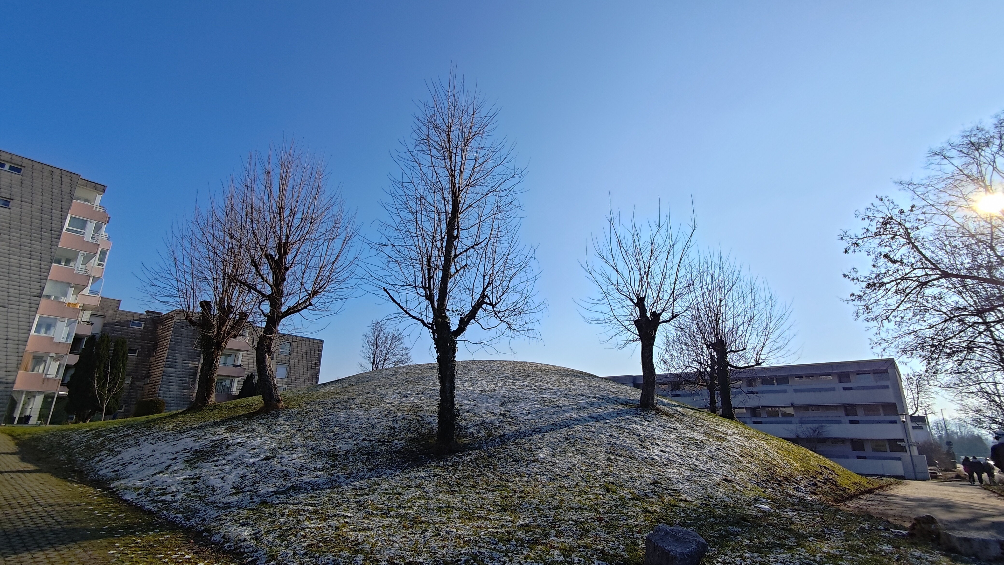 Die Ultraweitwinkelkamera ist mit einer Vollformat-äquivalenten Brennweite von 13mm schön weitwinkelig. Die Bildqualität ist bei guten Lichtbedingungen zwar gut, allerdings wird sie schnell schlechter, je dunkler es wird. Der Sensor besitzt nur