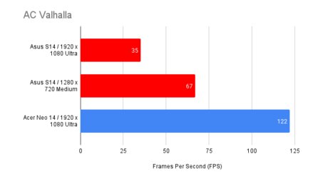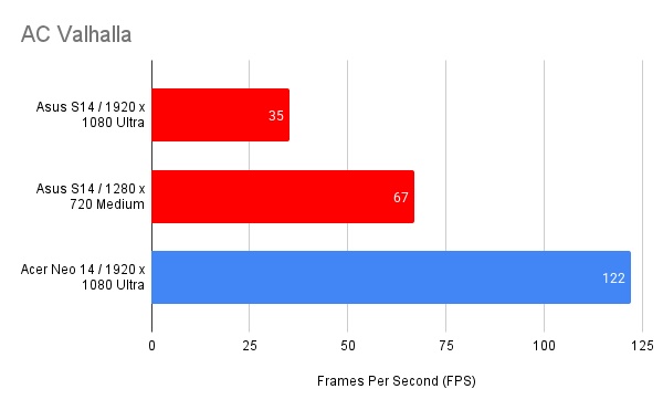 In AC Valhalla erreicht die Arc 140V mit Ultra Settings 35 FPS, das Spiel ist damit spielbar. In HD-Auflösung mit Medium-Setting sind dagegen 67 FPS möglich. Auch hier kann man der IGP eine durchaus beachtliche Leistung bescheinigen.
