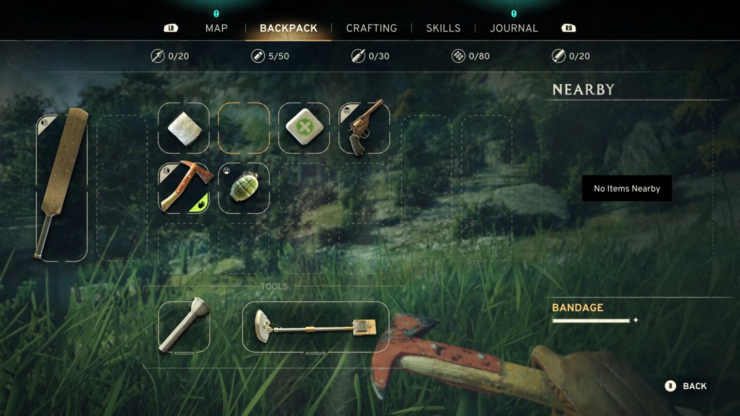 Aufmerksam umsehen müssen wir uns auch, um neue Craftingzutaten zu finden, die wir fast überall mitnehmen können. Wertvollere Schätze können wir außerdem mit einem Metalldetektor aufspüren. Mit den gefundenen Ressourcen bauen wir uns neue Waffen oder Verbrauchsobjekte wie Bandagen und Molotow-Cocktails. Modifizieren können wir unsere Ausrüstung aber wohl nicht.
