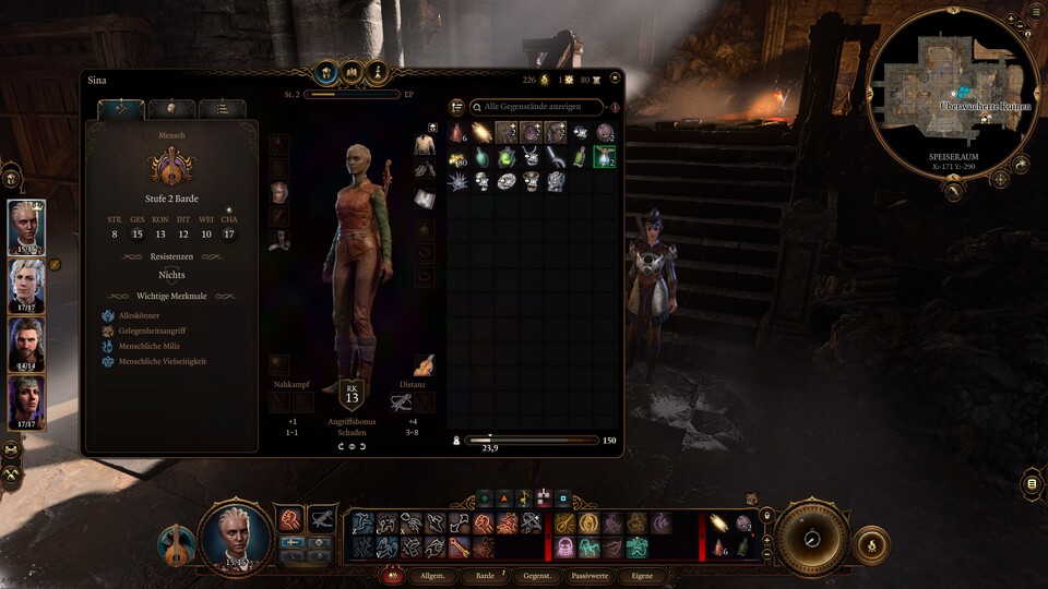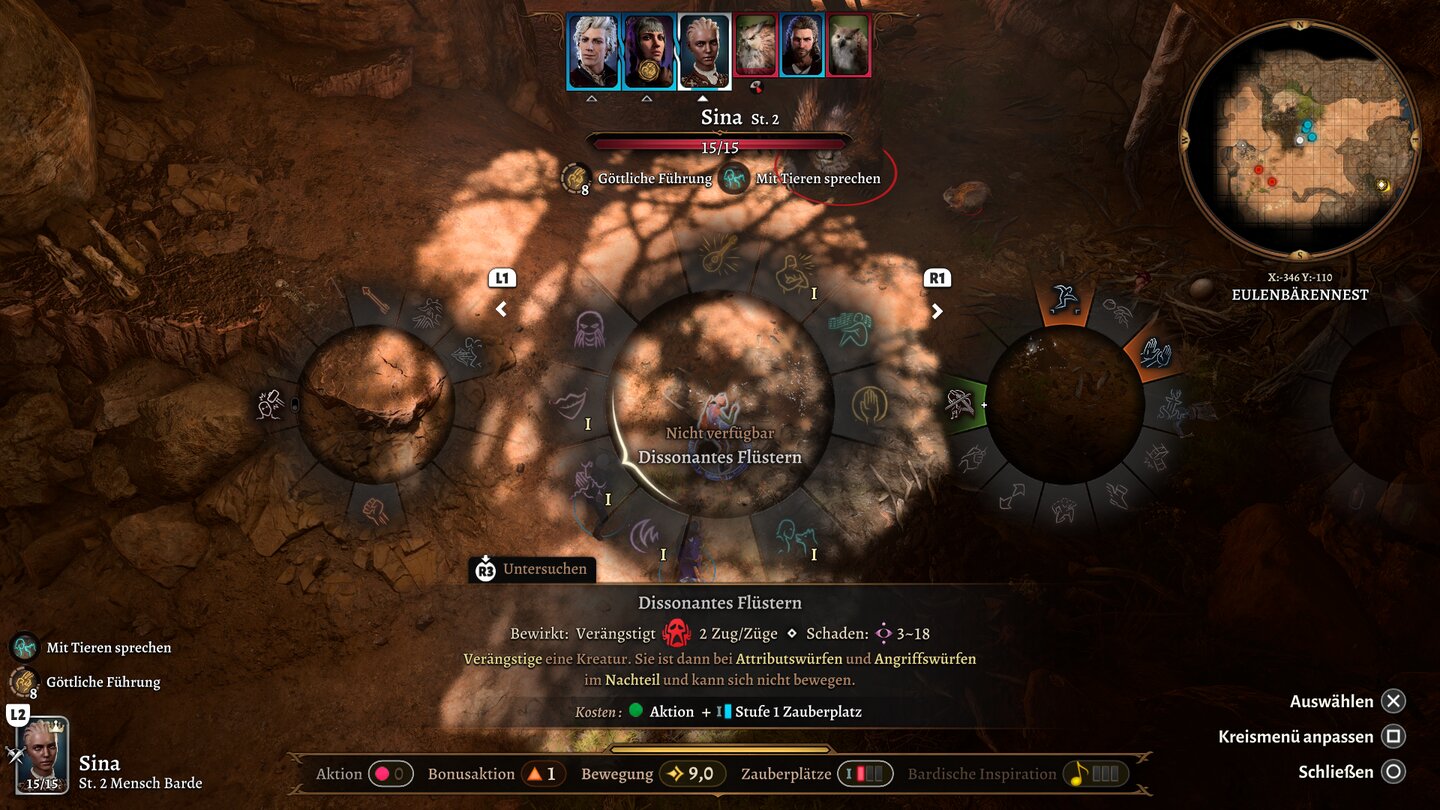 Das liegt auch hier einerseits wieder an einem anderen, aufgeräumten Interface, das mir meine Handlungsoptionen nun deutlicher anzeigt. Aktion, Bonusaktion, Bewegung und Zauberplätze erscheinen nun deutlich am unteren Bildschirmrand.