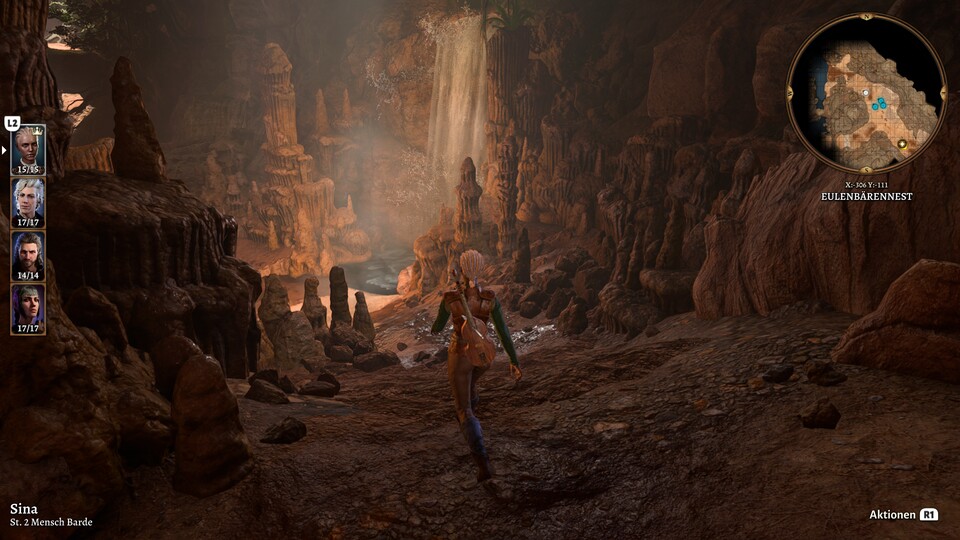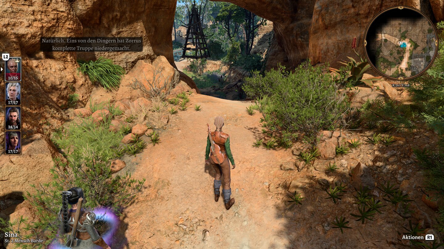 Unterbrochen wird das nur, wenn ich mal auf einen Charakter mit Dialog treffe. Dann stelle ich wieder fest: Stimmt ja, ich habe ja eine Heldin, die hier das ganze Abenteuer erleben soll.