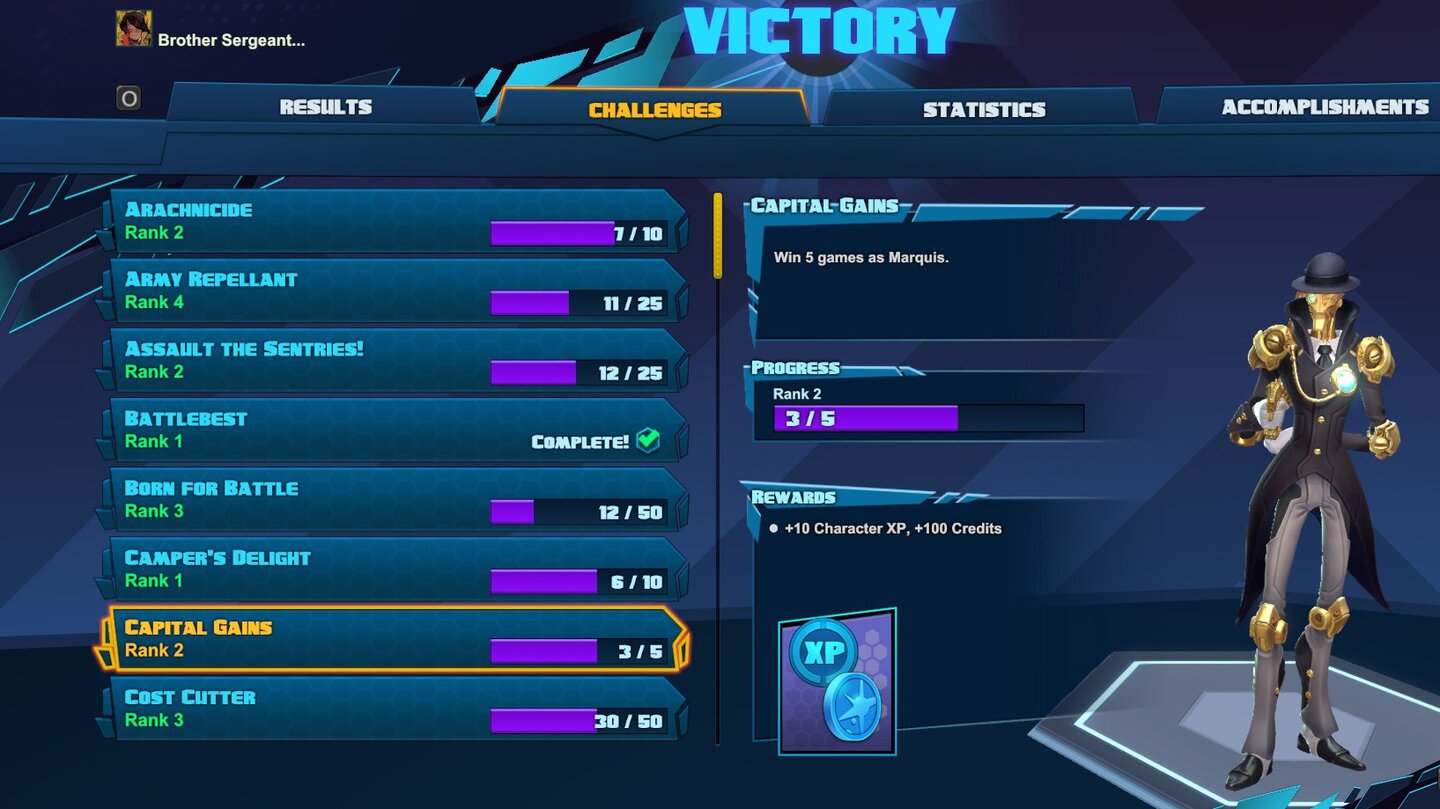 Der Kommandorang ist von den einzelnen Helden abgekoppelt und spiegelt die Gesamterfahrung wieder, die wir durch Kämpfe und Missionen in den verschiedenen Spielmodi gesammelt haben. Stufenaufstiege in diesem Rang bescheren uns Beute, Abzeichen, Titel und vor allem neue Helden - die schalten wir entweder über den Kommandorang oder besondere Unlock-Herausforderungen frei.