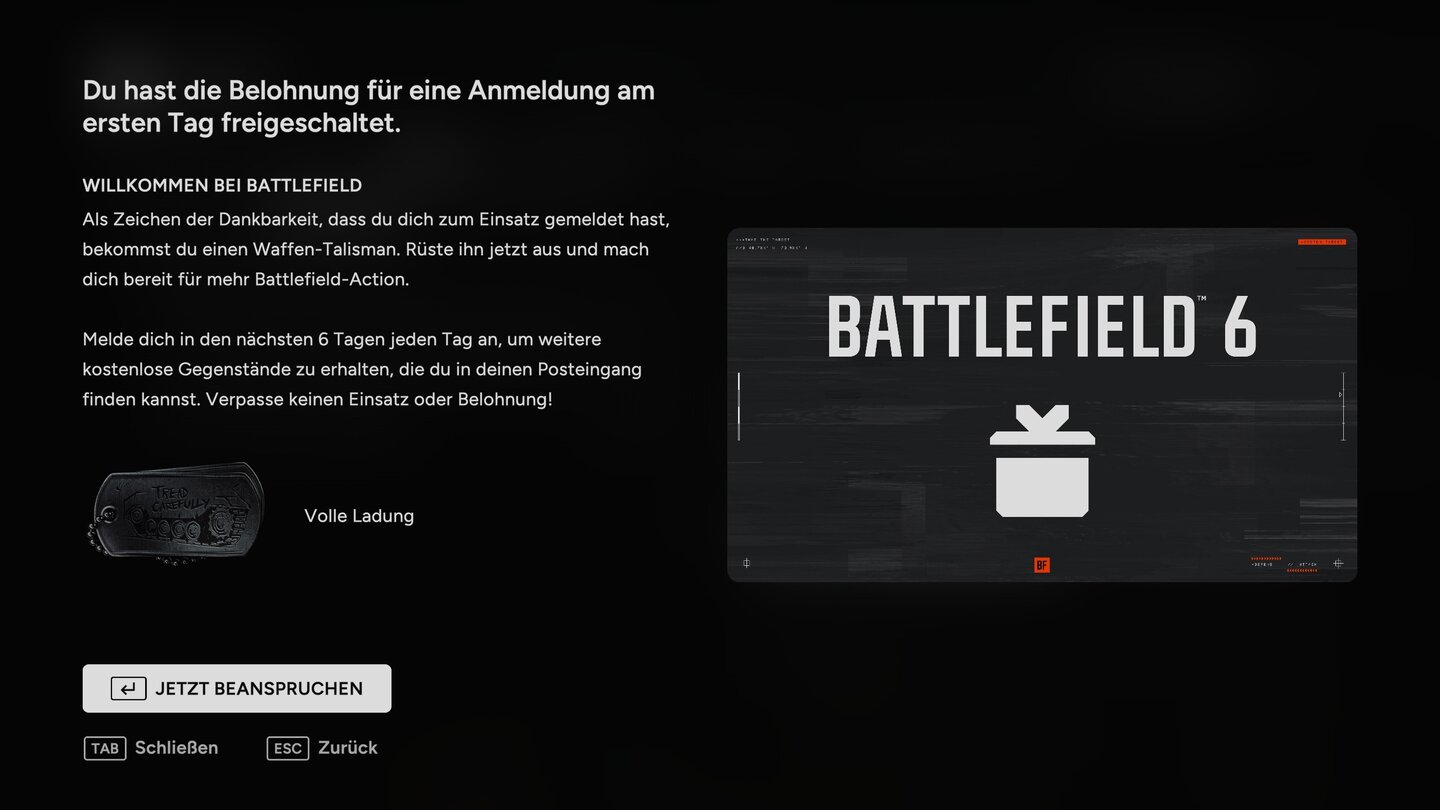 Einem geschenkten Gaul schaut man ja bekanntlich nicht ins Maul, deshalb möchten wir euch über einen zugegeben recht kleinen Gaul informieren, der euch in Battlefield 6 geschenkt wird. Also im übertragenen Sinne. Ihr bekommt kein Pferd! Aber trotzdem immerhin sieben kosmetische Belohnungen, wenn ihr in der Releasewoche spielt.