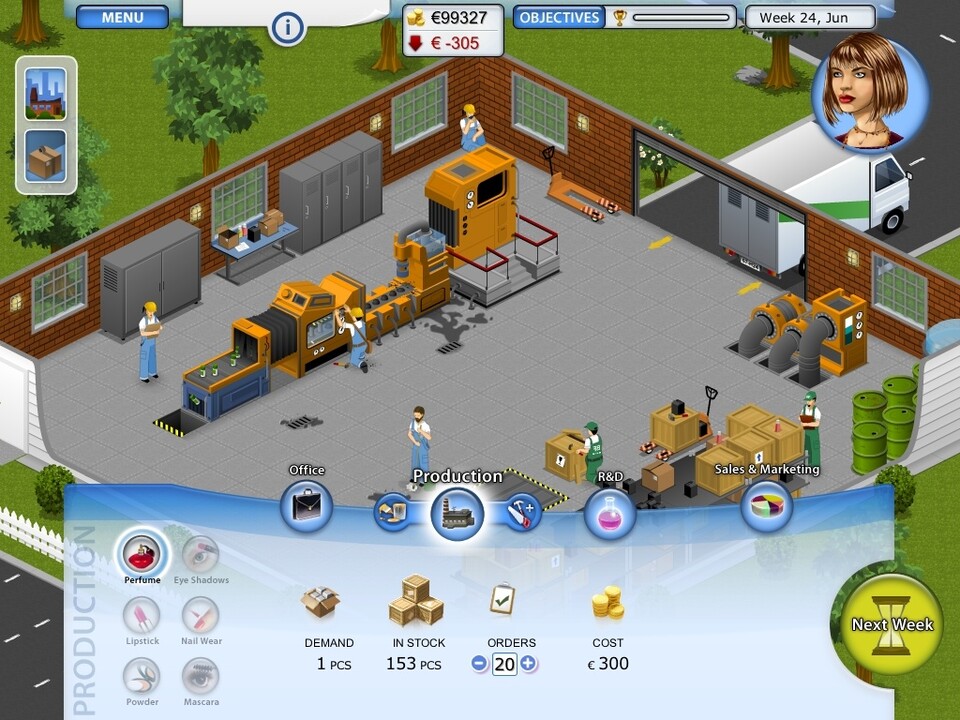 In Beauty Factory übernehmen Sie die Leitung einer Fabrik für Schönheitsprodukte. Das Wohl Ihres Unternehmens hängt dabei von der Kreation eigener Kosmetika, dem Design der Verpackung und nicht zuletzt von Ihrer Werbekampagne ab. Das Ziel: Die zahlende Kundschaft anzulocken und dadurch Ihre Firma auf wirtschaftlich gesunde Füße stellen.