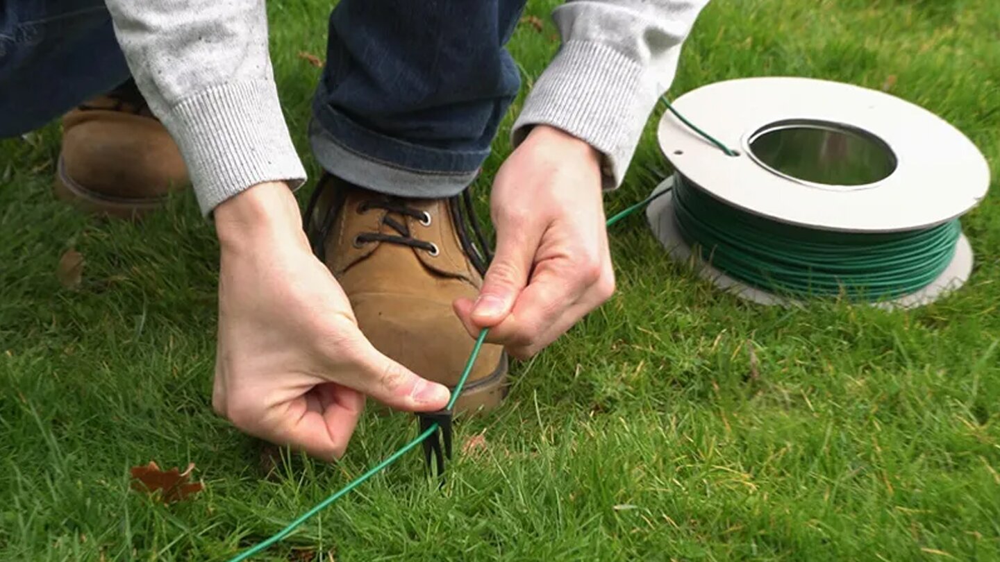 Dies ist die „Oldschool“-Variante, die aber immer mehr aus der Mode gerät. Hierbei wird ein Kabel am Rand des Gartens verlegt (oder flach vergraben). Der Roboter erkennt die elektromagnetische Abgrenzung und bleibt innerhalb dieses abgesteckten Feldes.