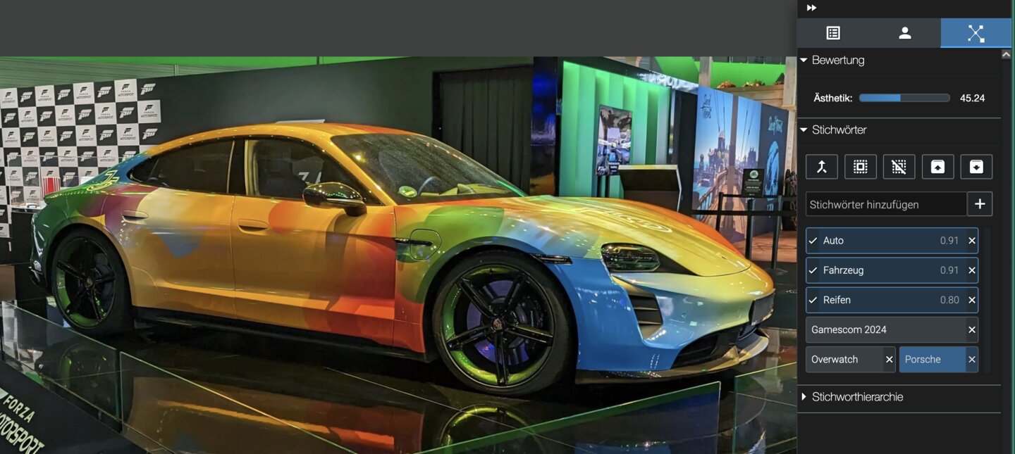 Mit der Freitextsuche finde ich das verschollen geglaubte Bild, lasse mir ähnliche Bilder vorschlagen und filtere diese dann nach Ästhetik. Aus den besten Shots picke ich mir jeweils meine Favoriten heraus und vergebe Tags und Namen. Dutzende Fotos vom gleichen Messestand? Schnee von gestern.
