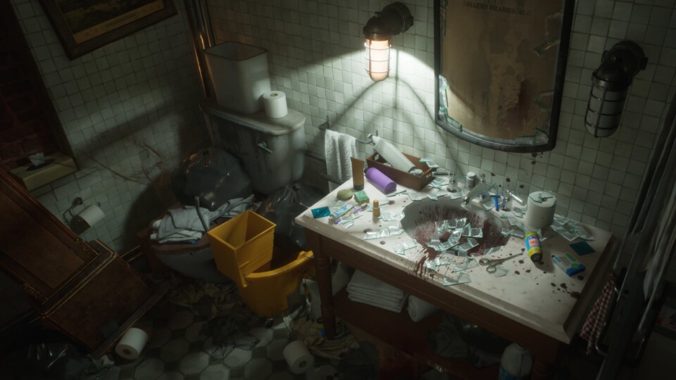 Augenweiden, nicht nur für Vampire: Diese Screenshots zeigen exemplarisch den scharf hervortretenden Wechsel zwischen verschiedenen Arten der Ausleuchtung, von fahlem Kerzenschein, über ausglimmende Röhren bis zum stechenden Lampenlicht über einem vermüllten Tisch.