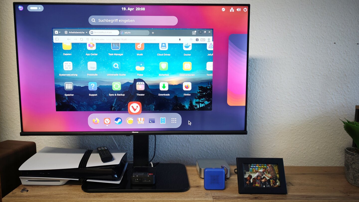 Trotz dieses kleinen Wermutstropfens will ich die praktischen Vorteile eines Mini-PCs im Wohnzimmer nicht mehr missen. Über meinen Browser kann ich jede Streaming-Seite aufrufen, ohne mich auf Apps verlassen zu müssen. Meine Startseite ist die Benutzeroberfläche von meinem NAS; Filme und Serien schaue ich über meinen Jellyfin-Server.
