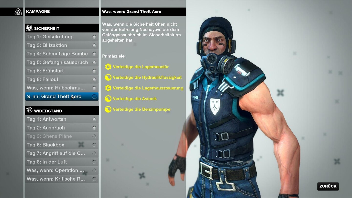 Die Aufgaben auf den Karten sind für die Fraktionen spiegelverkehrt. Wenn Sie eine Mission für den Widerstand bestreiten, dann müssen sie also genau die Ziele verteidigen, die sonst auf Seiten der Sicherheit angreifen müssen. Also zum Beispiel die Tür beschützen, die wir als Sicherheitspersonal auf der Karte als erstes sprengen sollen.