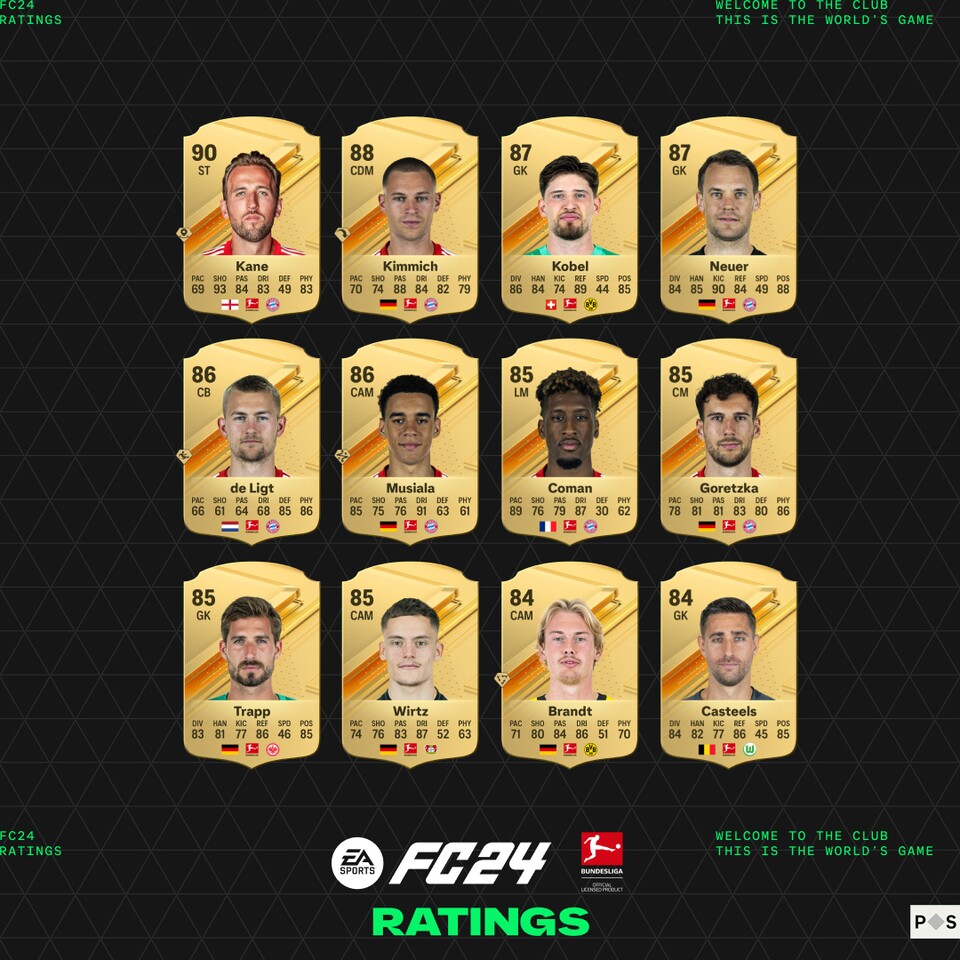 Der FIFA-Nachfolger EA Sports FC 24 hat die Ratings für die 25 besten Spieler der Bundesliga veröffentlicht, wir kennen jetzt viele Werte der Profis von Bayern, BVB und Co.