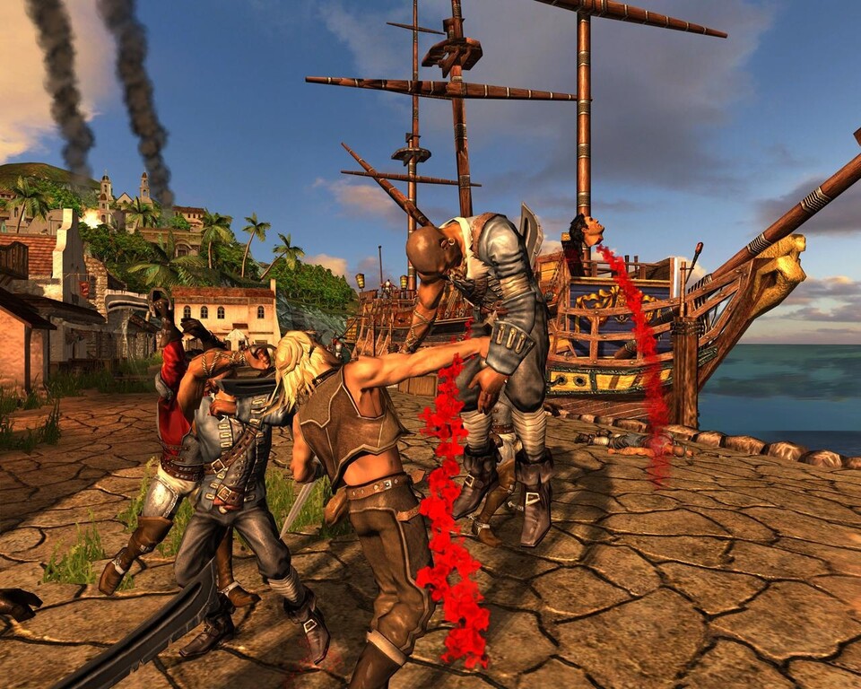 »Die Amis lieben es, aber der USK wird das nicht gefallen«, sagt Beco Mulderij von Playlogic. Da könnte er recht haben, denn das Action-Spiel Captain Blood macht seinem Namen alle Ehre: fliegende Körperteile, Blut spritzt, Finishing-Moves. Dabei beruht das Piratenspiel auf einem alten Roman von Rafael Sabatini, der schonmal mit Erroll Flynn in der Hauptrolle verfilmt wurde. Mehr als ein kurzes Demo-Level gibt's von Captain Blood auf der E3 allerdings noch nicht zu sehen. Wir halten für Sie weiterhin Ausschau nach der Totenkopfflagge - und die USK wahrscheinlich auch.