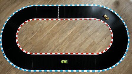 Die 15 Teile reichen als Starterset für zwei Spieler locker aus. Wer mehr Kumpels einladen oder größere Strecken bauen will, kann sich zwei Erweiterungssets für jeweils 50 Euro kaufen.