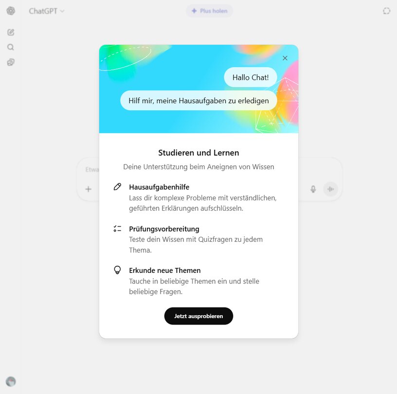 OpenAI hat diese Woche den Lernmodus von ChatGPT vorgestellt. Dieser führt die Nutzer an die Lösung heran und erklärt jeden Schritt des Lösungswegs.