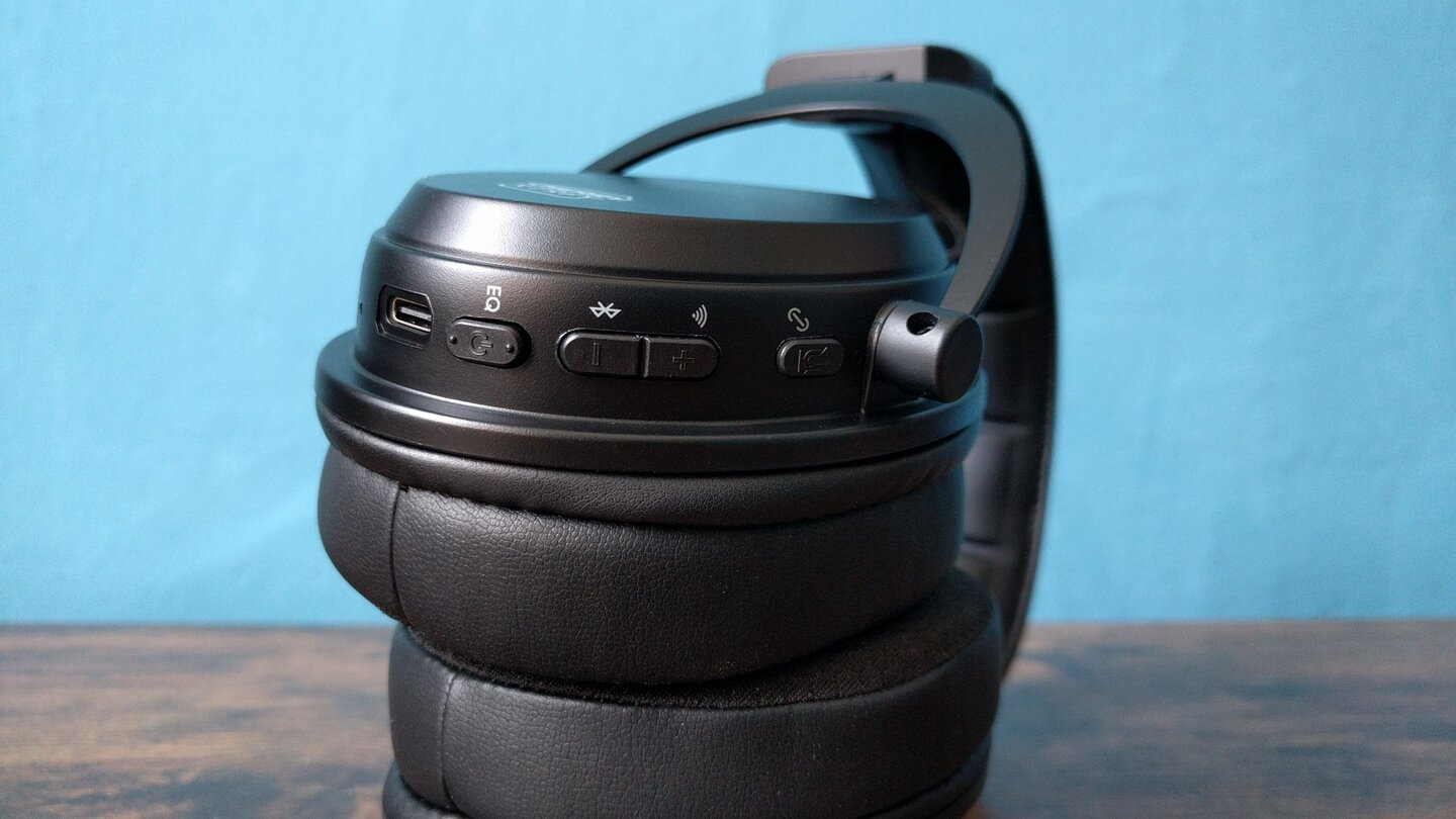 Ebenfalls ein wenig aus der Zeit gefallen scheinen die Kunstlederohrpolster – doch nur zunächst. Ein Blick auf die Innenseite offenbart, dass die Flächen, die an unserem Kopf beim Tragen des Headsets anliegen, aus einem Nylon-Mesh-Geflecht und somit etwas moderner und bequemer sind.