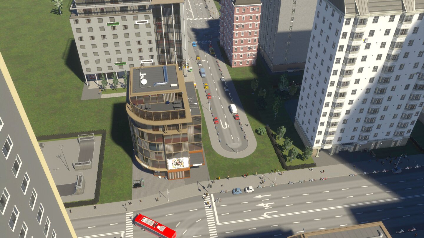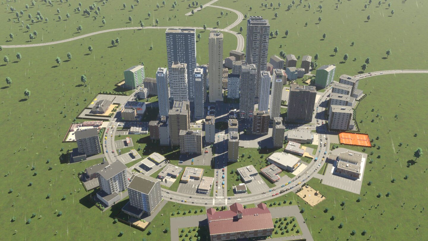 Auch das Platzieren von mehreren Kreisverkehren dicht hintereinander kann Probleme verursachen. Staut es sich an einem Kreisverkehr, fließt der Verkehr an den hinteren plötzlich nicht mehr. Arbeitet ihr stattdessen von Beginn an mit längeren Strecken im Stadtgebiet, umgeht ihr das Problem teilweise.