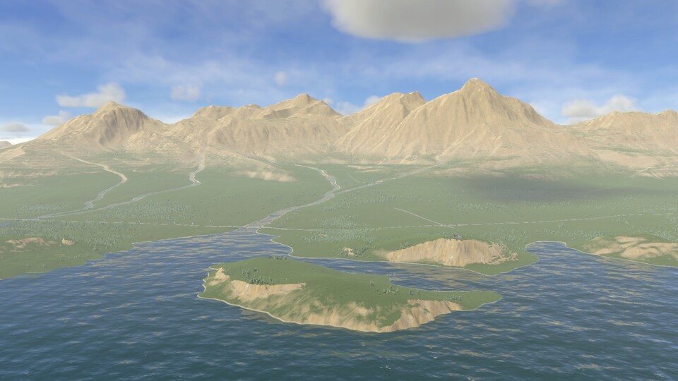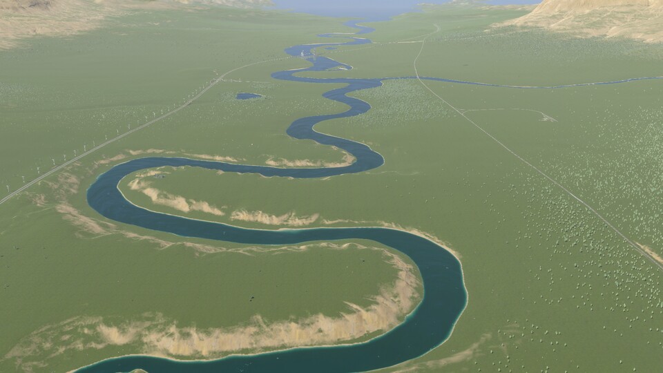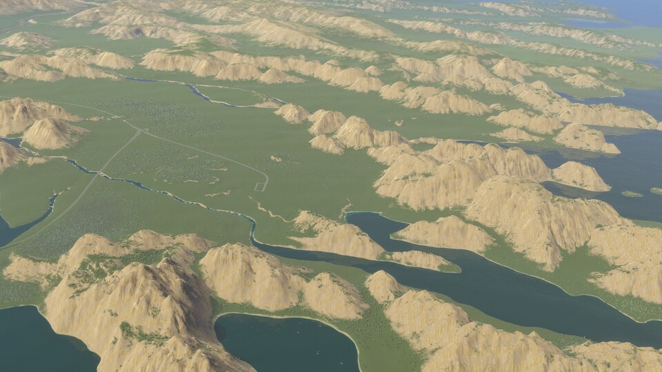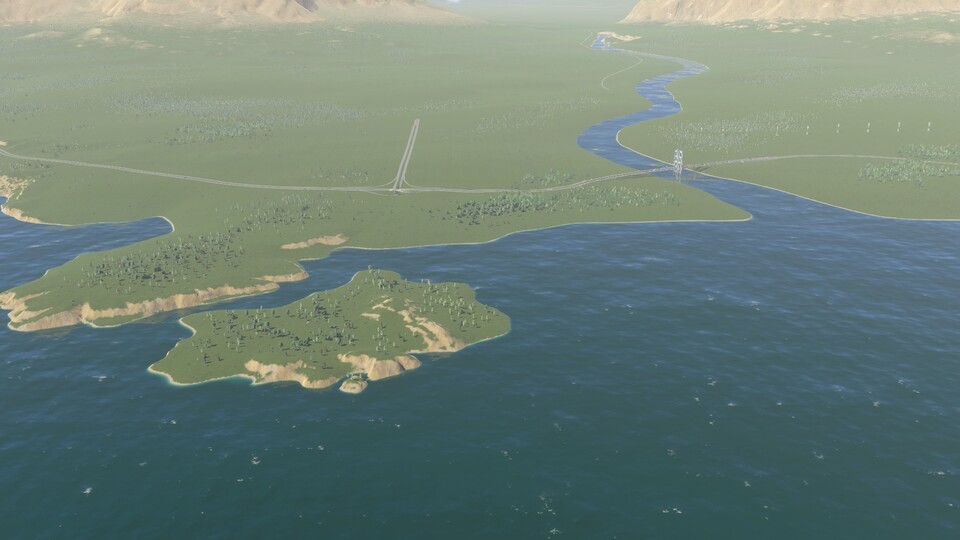 Die Karte ähnelt den Weiten Ebenen, bietet jedoch weitaus mehr Fläche zum Ausbreiten. Hier ziehen sich keine Gebirgsausläufer in den Süden, die Voraussicht erfordern. Diese Karte richtet sich vor allem an Einsteiger in Cities Skylines 2. Begrenzungen sind weit entfernt, und mit viel Platz können auch große Planungsfehler wieder ausgeglichen werden. Am Meer lässt sich ein Hafen einrichten. Lediglich eine Zugverbindung muss von Grund auf neu errichtet werden, da es keine bestehenden Gleise gibt.