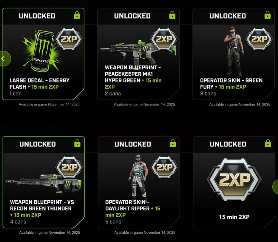 Call of Duty setzt einmal mehr auf eine Partnerschaft mit Monster Energy: Auf den Aktionsdosen könnt ihr euch exklusive Skins und doppelte XP-Punkte für Black Ops 7 sichern.