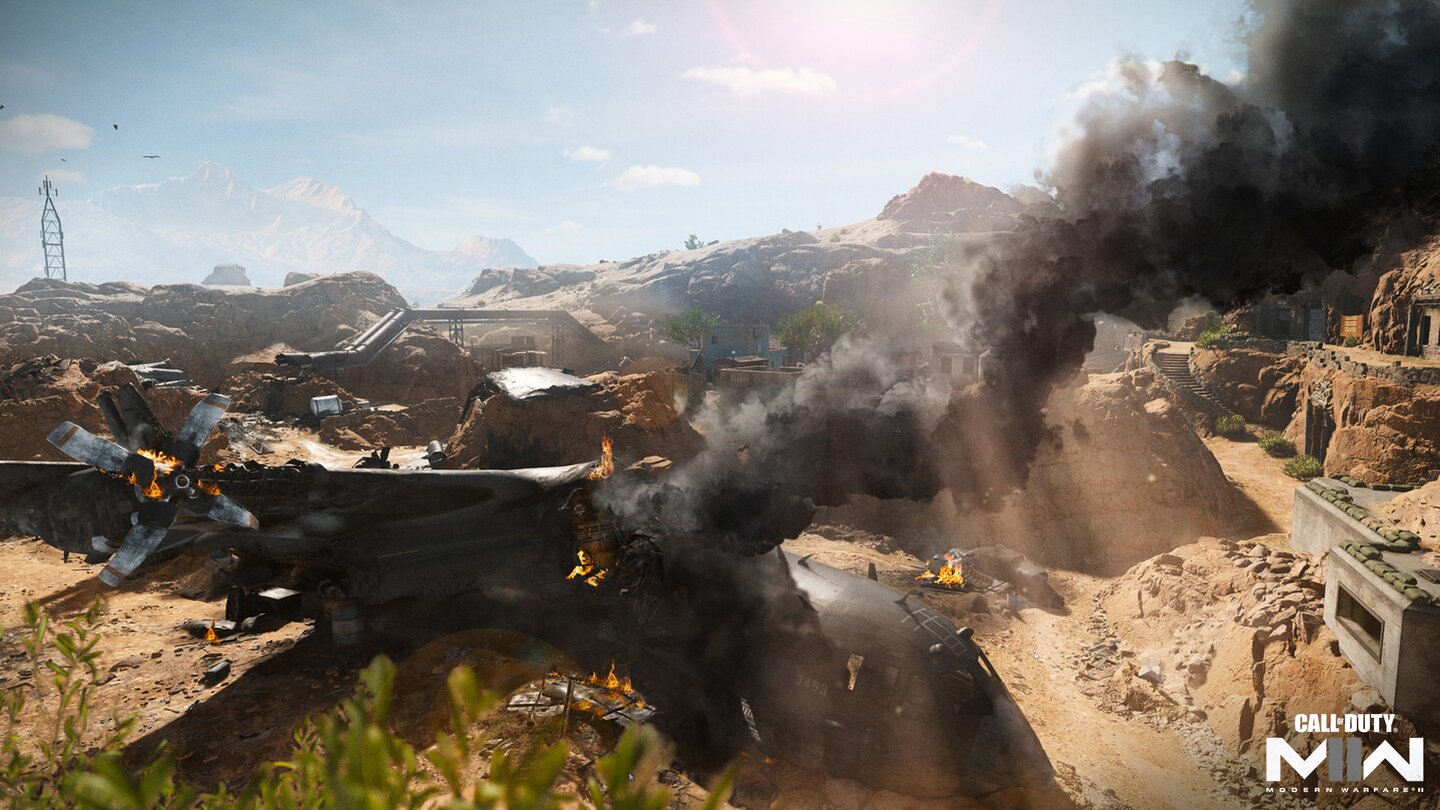 Bei Sattiq kommen vielleicht bei einigen von euch Erinnerungen an Modern Warfare 2 von 2019 auf: Die Karte ähnelt nicht nur zufällig mit ihrem abgestürzten Flugzeug der Map Afghan. Hier erwartet euch eine Mischung aus Vertikalität, Kämpfen zwischen kleinen Gebäuden und Gefechten im Inneren des Höhlensystems.